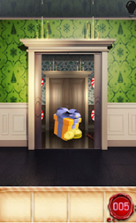 На 4 уровне над дверями висят красные носки, в одном из них надо найти ключ. Поэтому начинаем на них по очереди нажимать и таким образом находим ключик для открытия дверей.