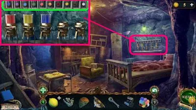 Забираем сломанные лопасти и манускрипт. Потом фишку метроном и щипчики для бровей. Открываем дверцу избушки и вытаскиваем веревку с запиской